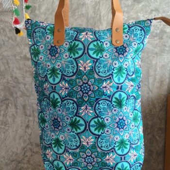 Original Bohemian Bag x Turquoise Canvas tote Beach bag for Summer